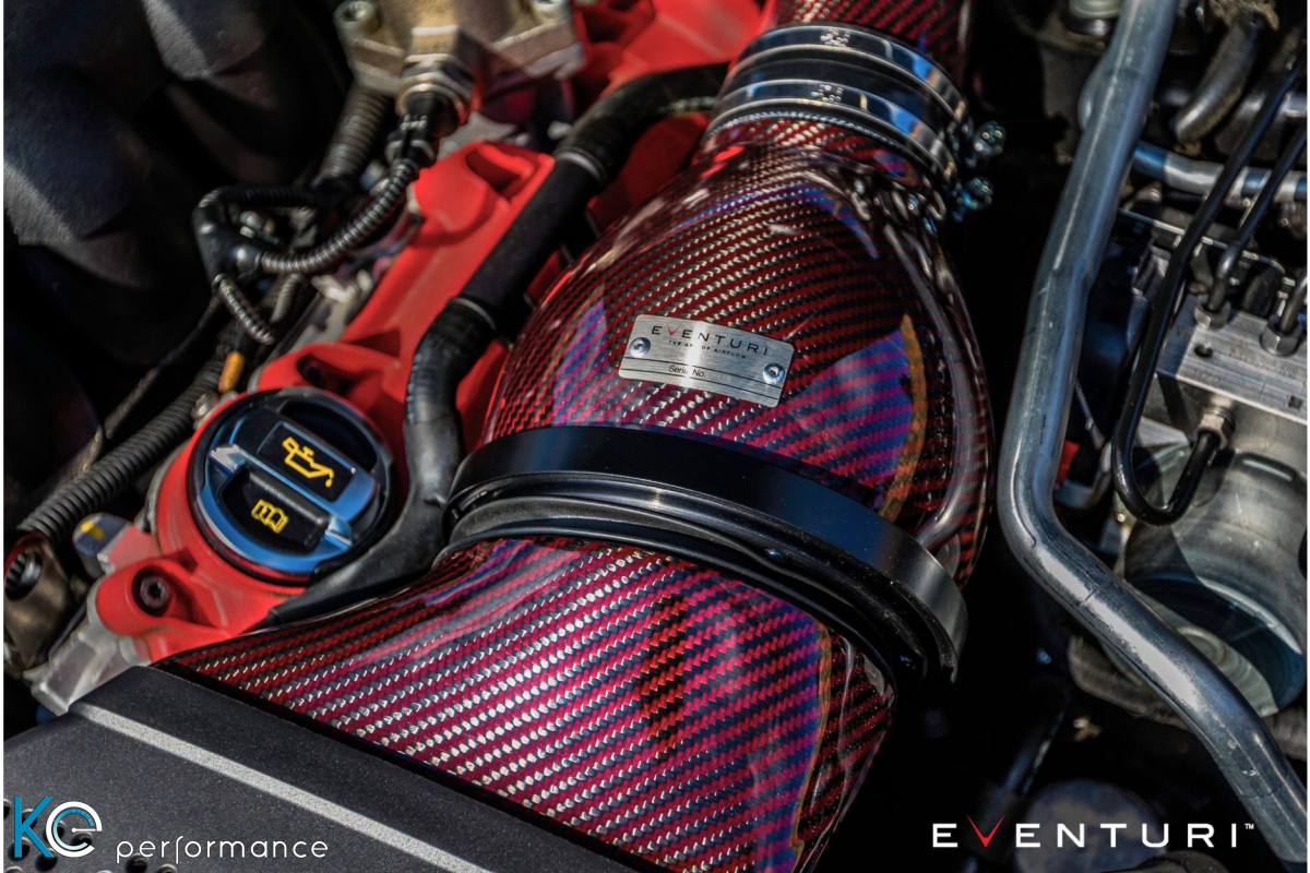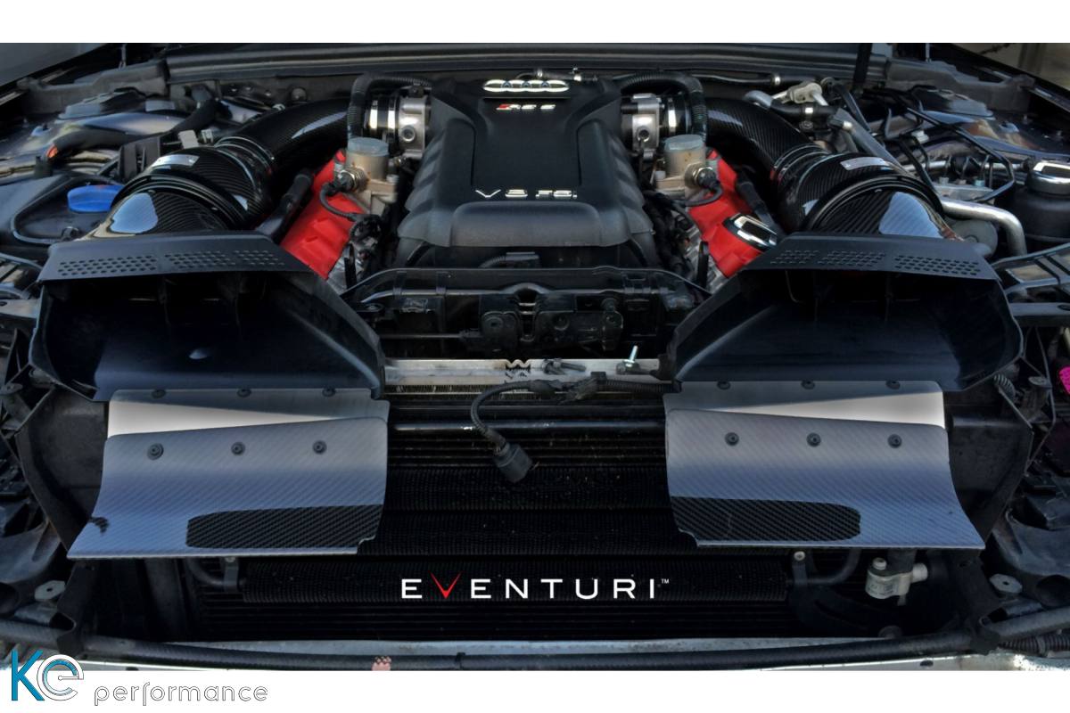 Das Eventuri Carbon Ansaugsystem für Audi B8 RS4 RS5 wurde entwickelt um die Motorleistung zu erhöhen, das Fahrverhalten zu verbessern und das gesamte Fahrerlebnis zu steigern. Die Hauptaspekte liegen in der Balance zwischen Aerodynamischer Effizienz und Lufteingangstemperatur. Es wurde ein offenes System gewählt allerdings mit Unterschieden zu anderen Airboxen aus dem Zubehör. Das ist an der Form des Carbongehäuses sowie der Position und Form des Luftfilters zu erkennen.Die Airbox wird im Prepreg-Carbon-Verfahren hergestellt.