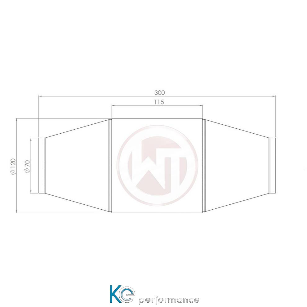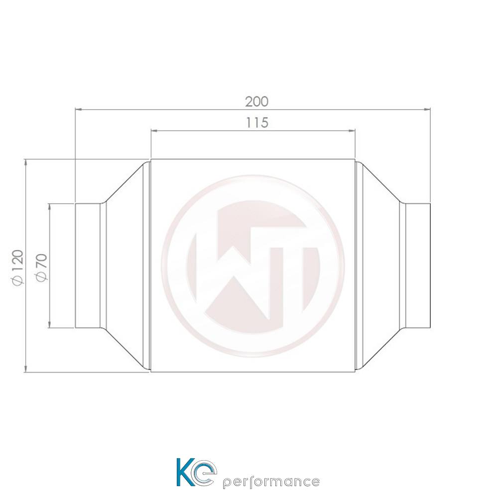 Zellenanzahl wählbar zwischen 100 CPSI und 200CPSI. Mehr Leistung durch weniger Abgasgegendruck. Maße der Zeichnung sind in mm angegeben.
